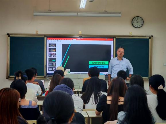 随后在专业师资介绍环节,由应用心理学专业负责人王勇智老师以及艺术教育专业负责人李鑫老师向新生详细介绍了学院的师资队伍,到场的每一位专业老师都向新生做了简单的自我介绍,不仅有资历展示,还有各位老师的学科项目以及专项负责内容,让同学们更加了解学院课程,增强学习动力。不仅如此,两位专业负责人还详细介绍了专业特色课程的设置,绘制了清晰的专业路径蓝图,生动形象的讲解,配以精心准备的PPT展示,也能够让新生们对所学专业有了更为直观和深入的了解。