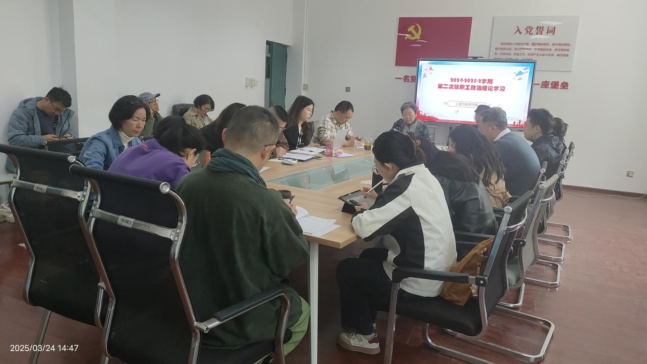 为了深入开展学习教育强国主题,心理与教育学院于2025年3月24日下午在D2-303会议室组织开展2024-2025第二学期第二次政治理论学习会。会议由我院党支部书记李兵主持,学院全体教职工参加。青年党员教师李君、郭常波和胡蓉领读三篇文章,深入学习《教育强国建设规划纲要(2024—2035年)》的重要内容,探讨了如何在教育教学中为教育强国贡献自己的力量,更好地贯彻落实习近平总书记关于教育强国的重要论述。