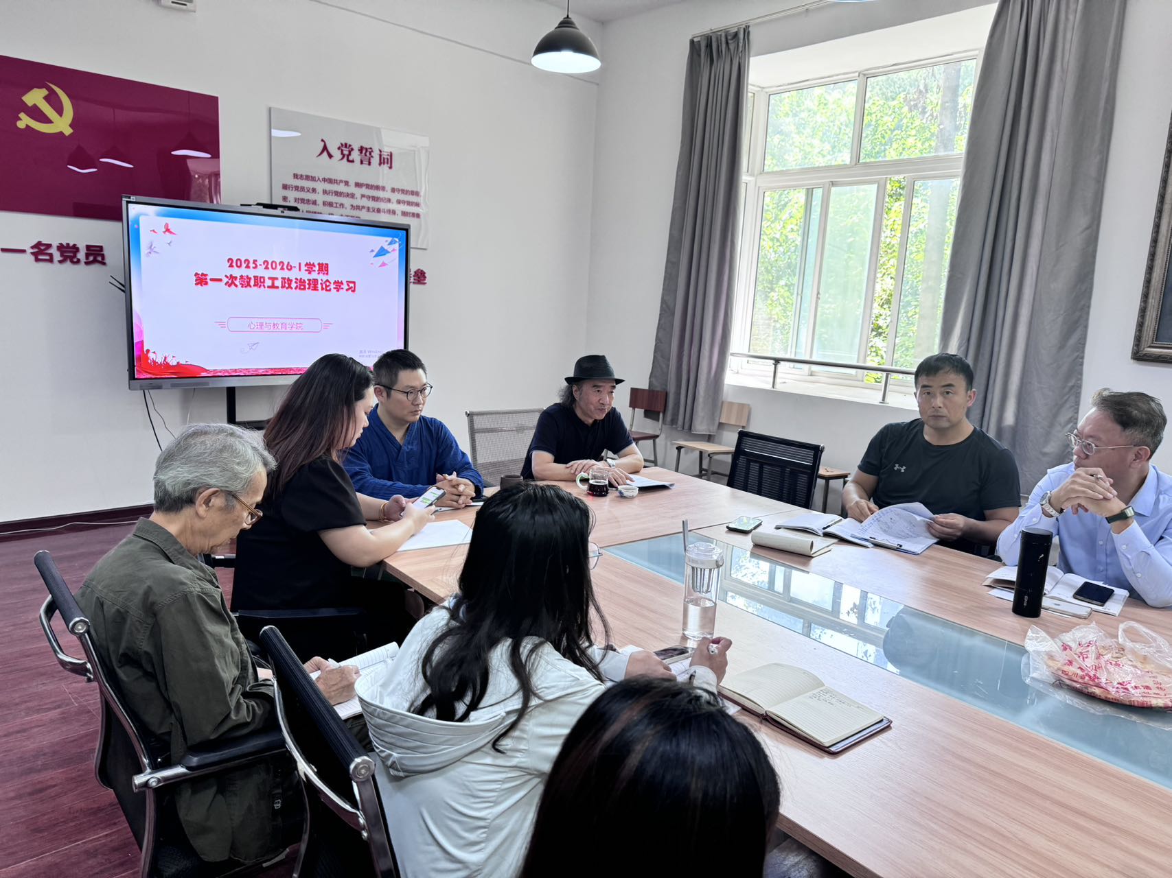 新的学期,万象更新,心理与教育学院也开启了新的征程。2025年9月8日下午2点半,学院在D2-303会议室开展2025-2026学年第一学期第一次政治理论学习会。此次学习会意义非凡,不仅正值新学期开端,更值纪念中国人民抗日战争暨世界反法西斯战争胜利80周年。此次会议以铭记历史、展望未来,大力弘扬教育家精神而展开。会议由我院党支部书记李兵主持,全体教职工齐聚一堂,共同参与了此次学习。